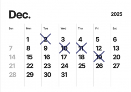 【2025年12月の定休日】